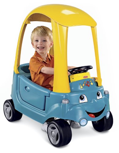 Styled after the evergreen cozy coupe format this Happy Songs Coupe plays five, 10 seconds children rhymes. It has cute styling, a big "smile" on the front bumper, musical note labels on the body all of which, play into the "Happy Car" positioning. It has the lights and sounds feature, a working door and a roof.